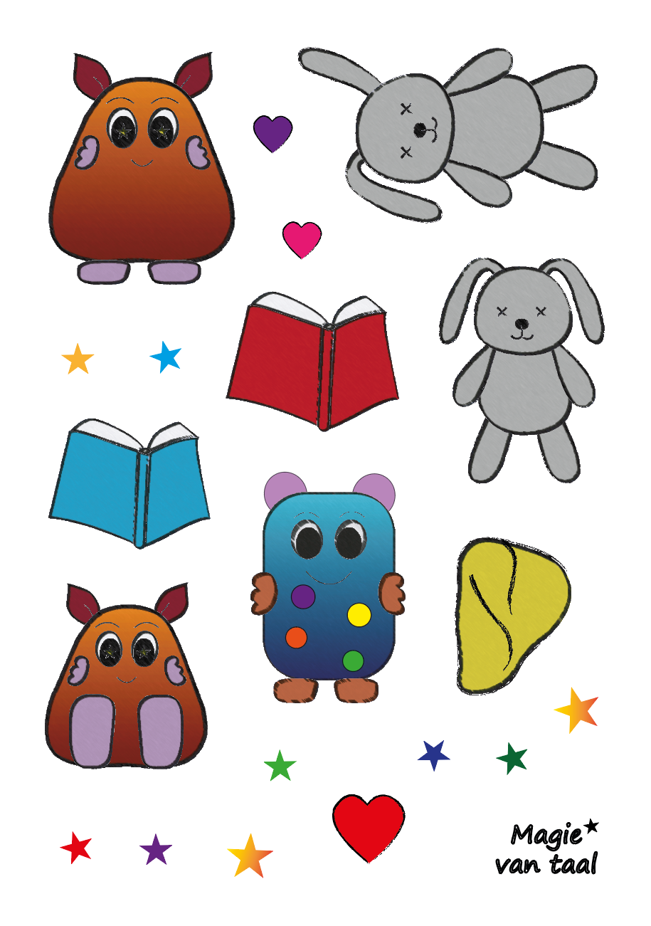 Versier je kleurplaten of je boek met de stickers die passen bij deel 1 van de boekenreeks.